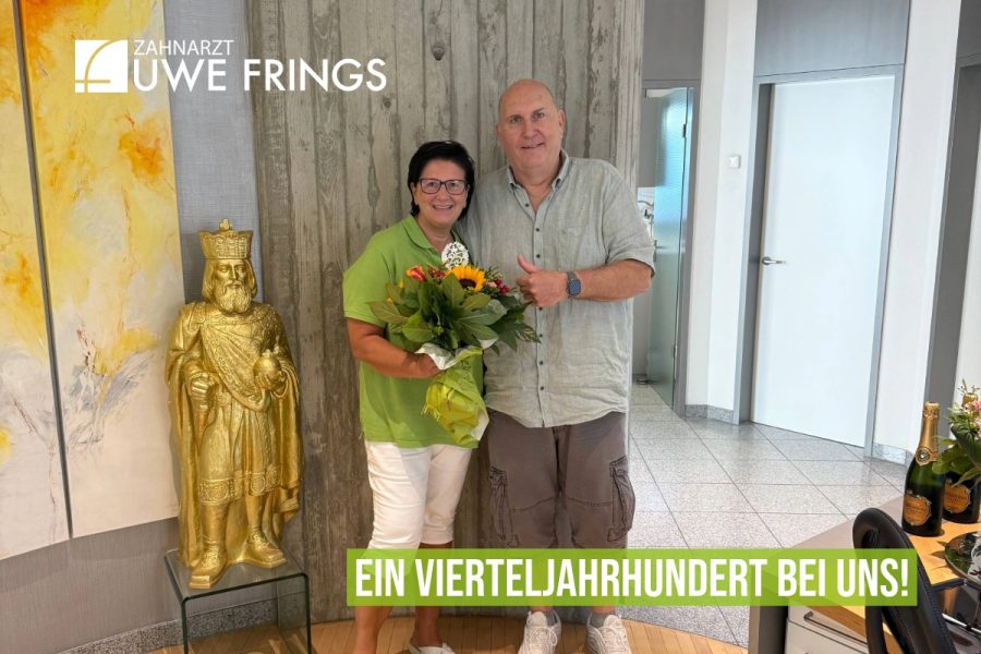 Monika Kierchhoff blickt auf rund ein Vierteljahrhundert Anstellung bei Uwe Frings zurück: „Ich sage immer: ‚Wir haben Silberhochzeit‘“, erklärt die 58-Jährige mit einem Schmunzeln. Dass Monika überhaupt ihren Weg zu uns nach Geilenkirchen fand, ist ihrer Hartnäckigkeit zu verdanken: Zum Jahrtausendwechsel suchte die bereits erfahrene ZFA eine neue Herausforderung. „Da gab es noch diese Gelben Seiten“, erinnert sich die gebürtige Aachenerin. Dort fand sie uns und rief an. Doch nach dem ersten Gespräch kam es zunächst zu keiner Übereinkunft. Monika hatte zum Glück einen langen Atem, rief noch einmal an – und wurde eingestellt.